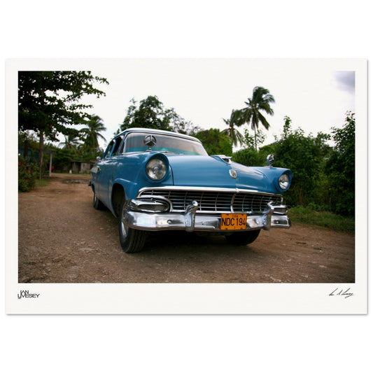 Classic Light Blue Dodge Art Poster - in the hills of Cuba