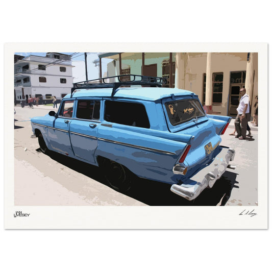 Classic Light Blue Car Abstract Art Poster - on the streets of Cuba