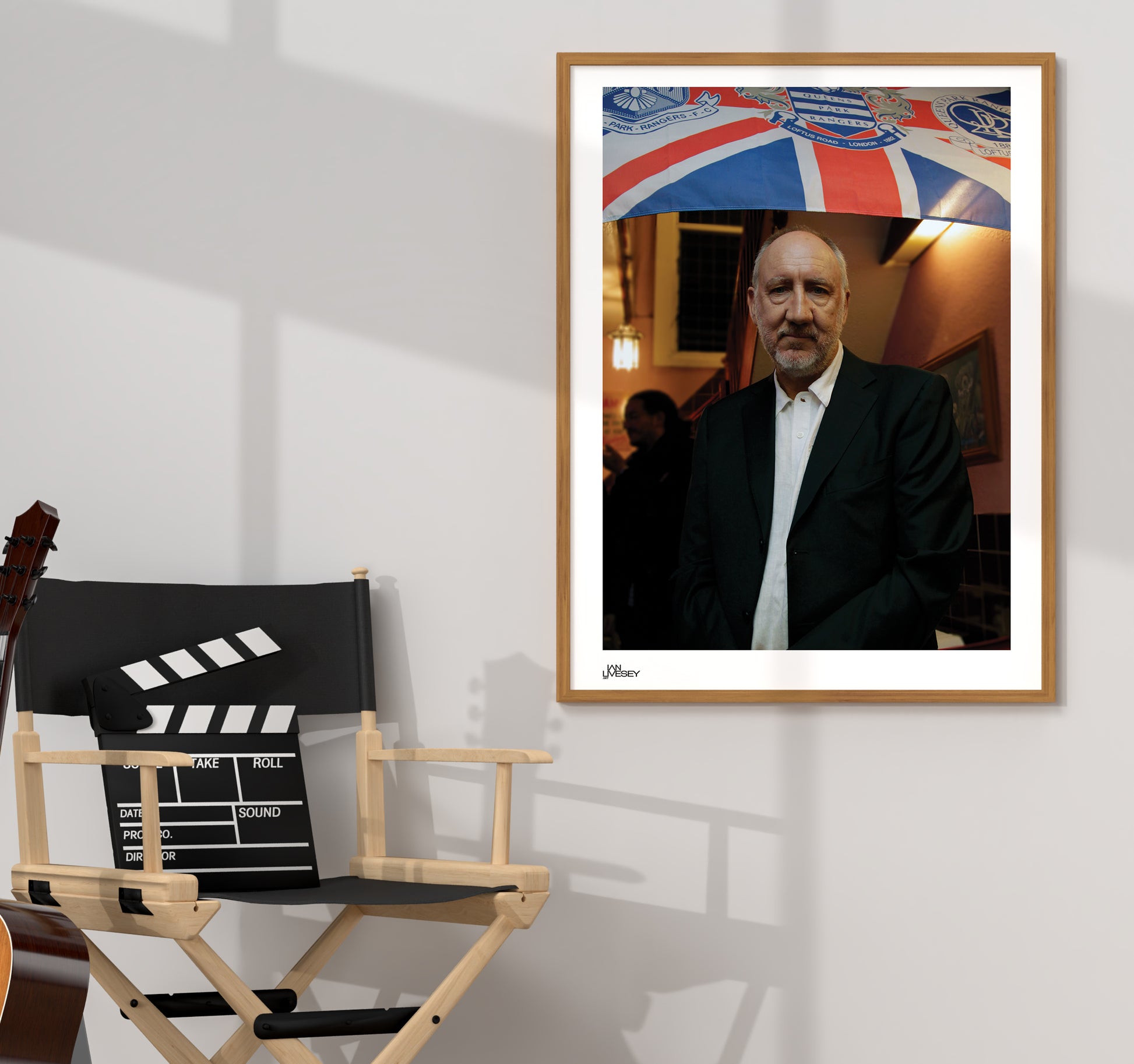 Pete Townsend Poses in front of QPR Flag Portrait Bush Gardens - Limited Edition Prints